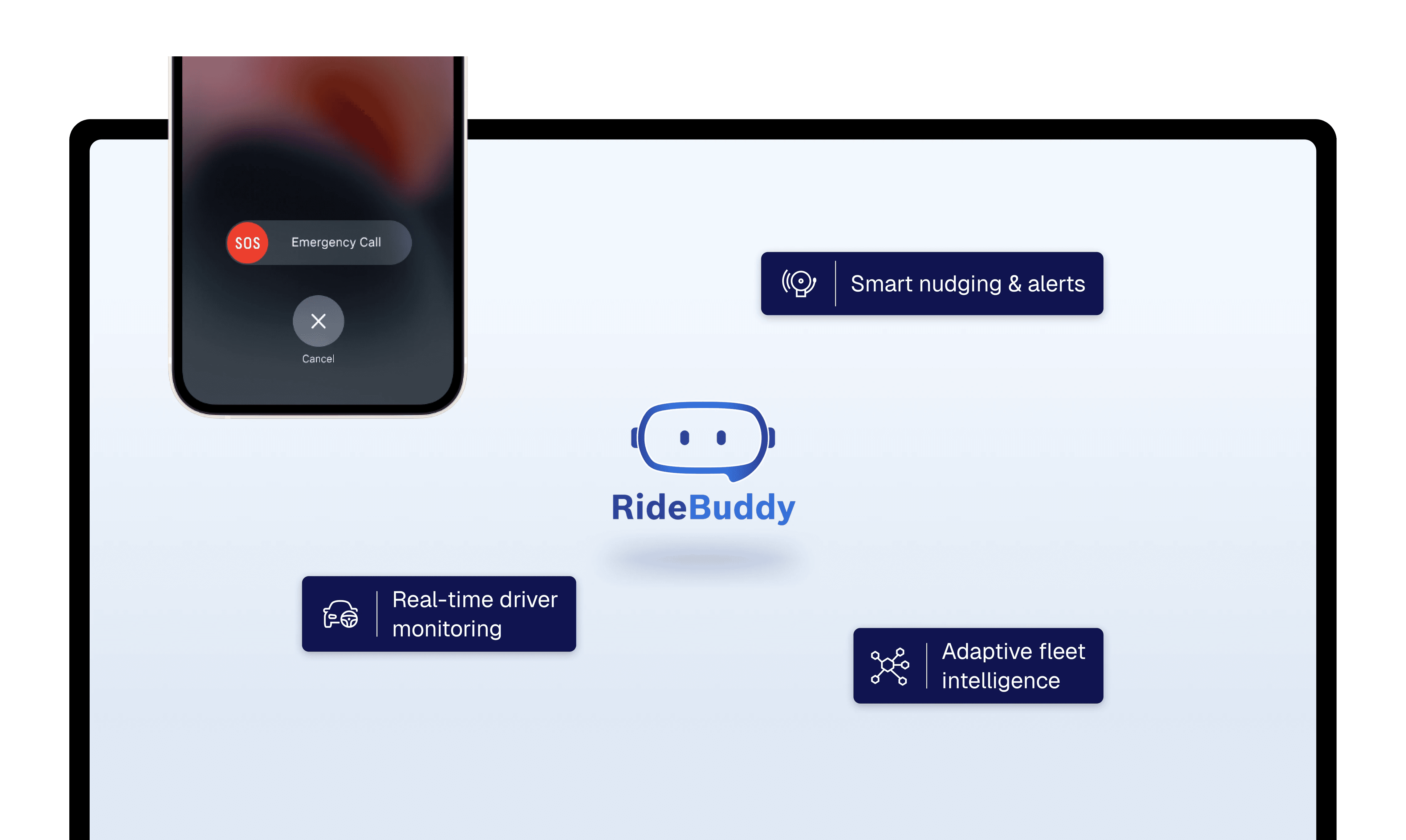 Design for monitoring driving behavior, using real-time IoT signals and AI-powered voice nudges to improve driving behavior and enable SOS support.