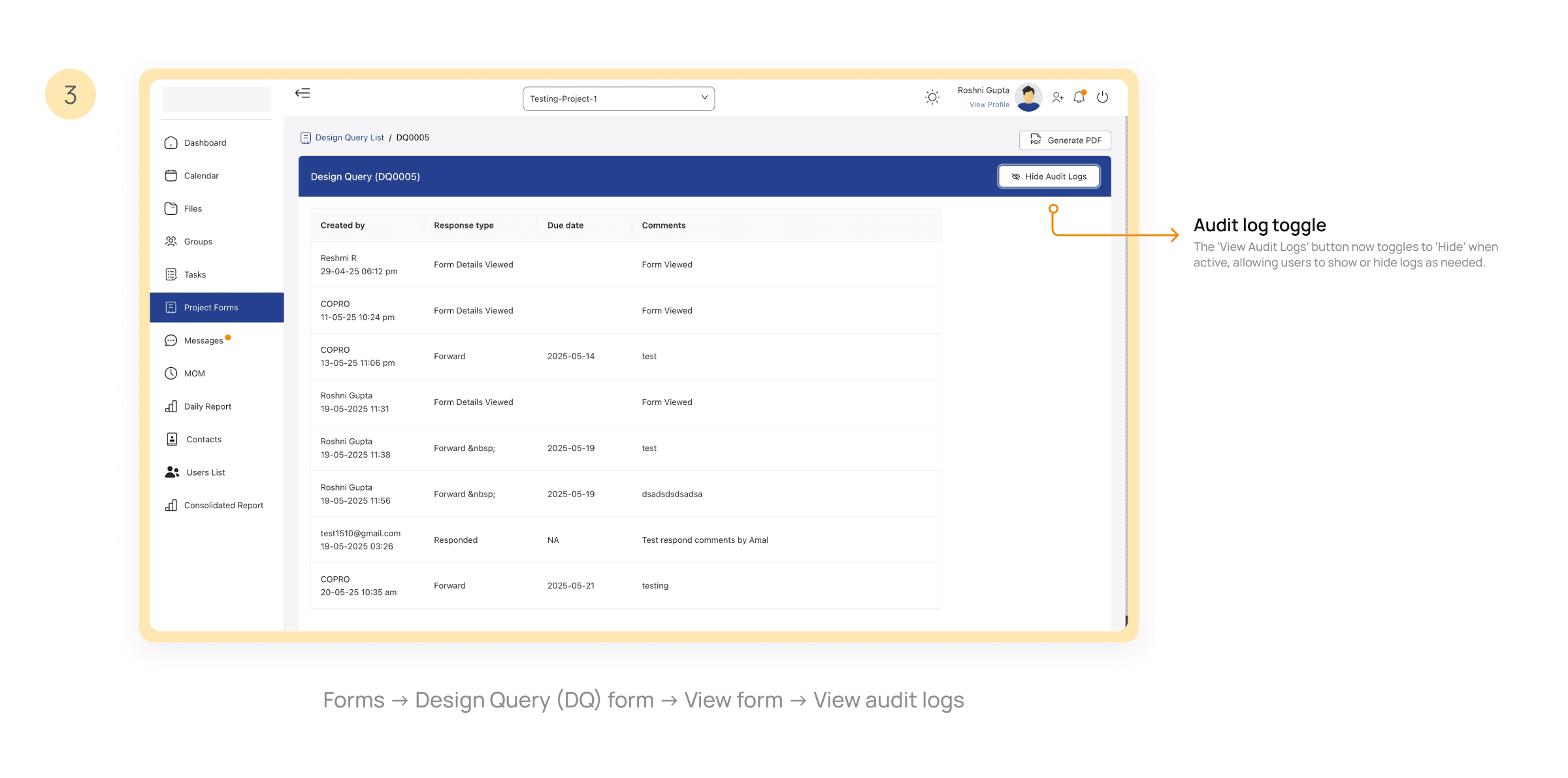 Workers found the audit log toggle helpful for quick access without cluttering the interface.
